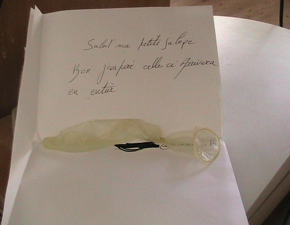 - Par courrier : Envoie-moi ta capote bien remplie (anonyme, bien emballée). Une fois reçue, je l’ouvre face caméra, je vide ton jus chaud dans ma gueule, je le bois, je le recrache sur mon corps, je me le fous au fond du cul avec un gode ou mes doigts, ou je m’en sers pour assaisonner ma bouffe (pâtée chien, pain, cassoulet…). Tout est filmé, gros plans sur l’avalage, le doigtage, le repas dégueu.